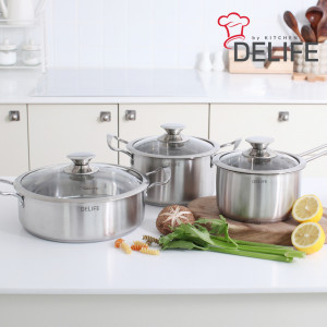 [DELIFE] 디라이프 IH 스테인리스 쿡 웨어 3종 세트 (편수16cm+양수18cm+전골24cm)