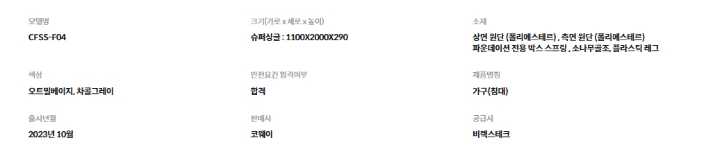 [코웨이] 모던 파운데이션 오트밀베이지,차콜그레이(슈퍼싱글,퀸,킹,라지킹)