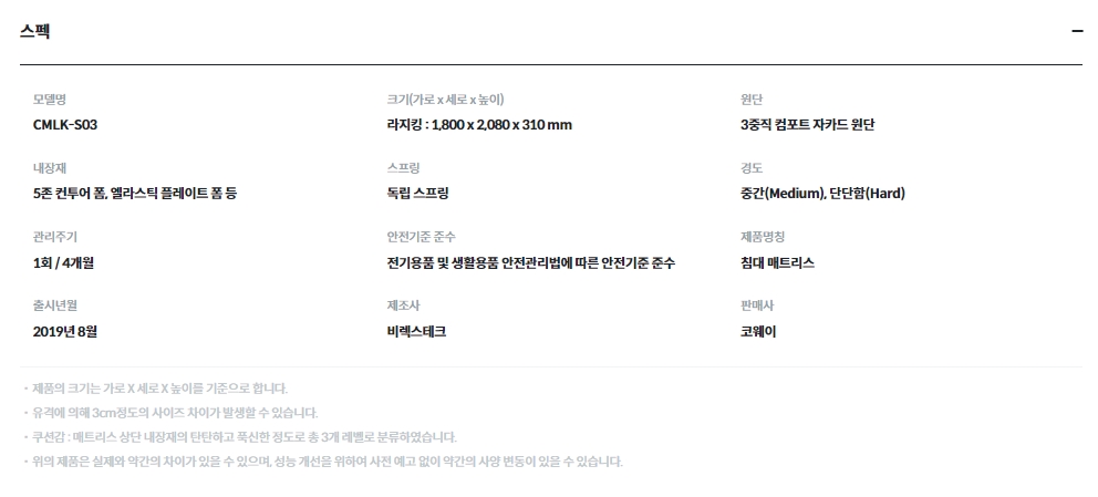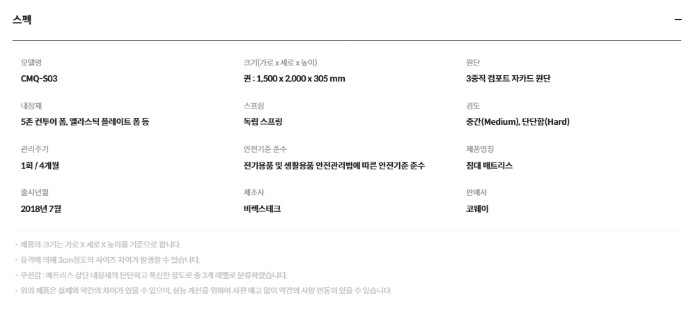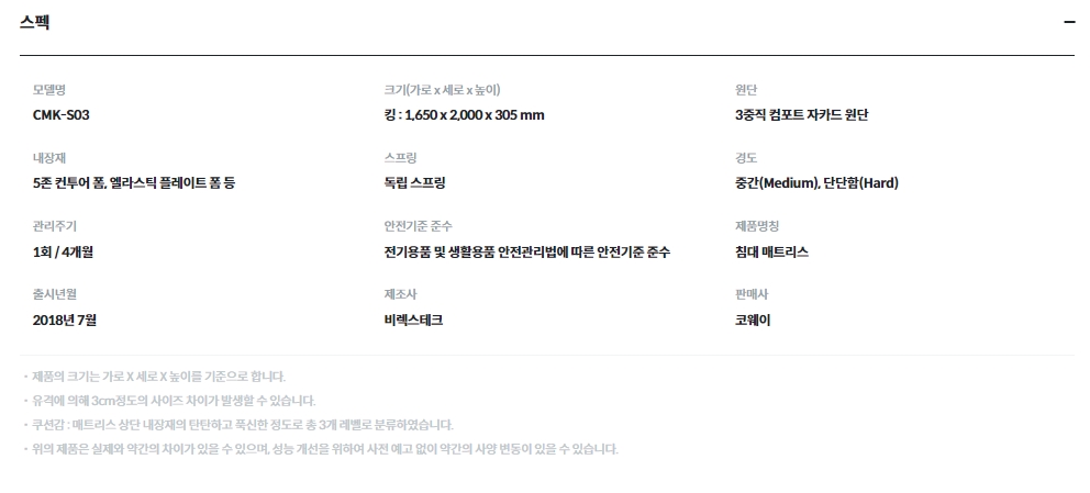 [코웨이] 탑퍼교체 프라임 매트리스 (슈퍼싱글,퀸,킹,라지킹)