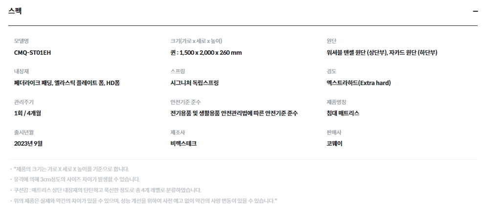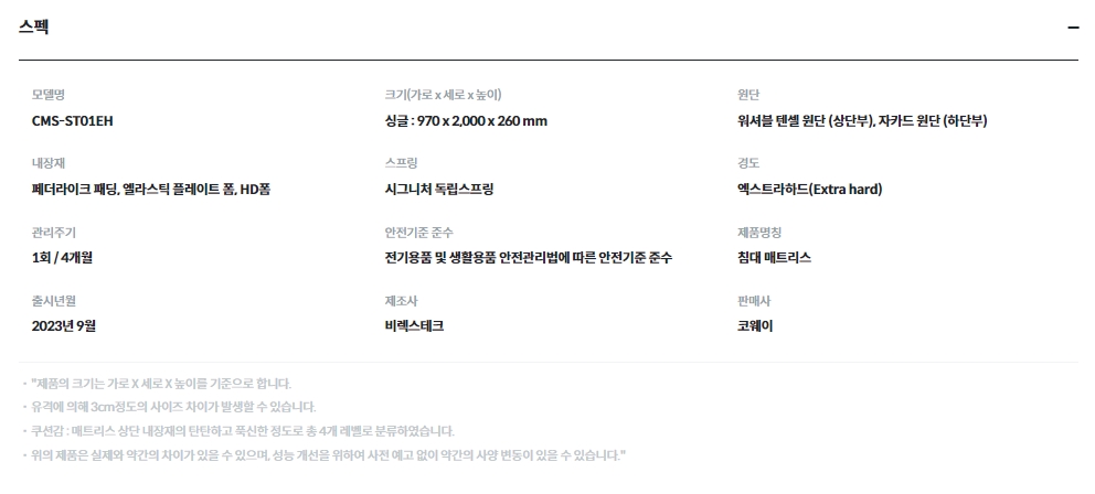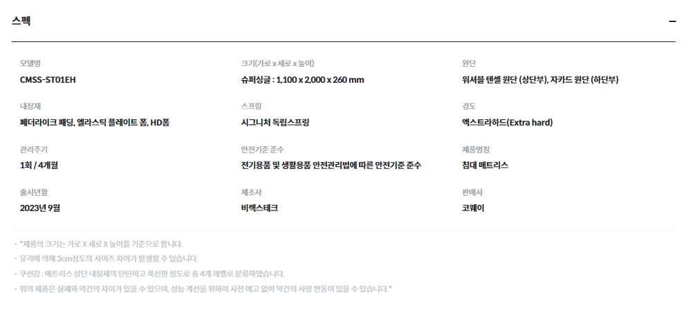 [코웨이] 엘리트 매트리스 (싱글,슈퍼싱글,퀸)