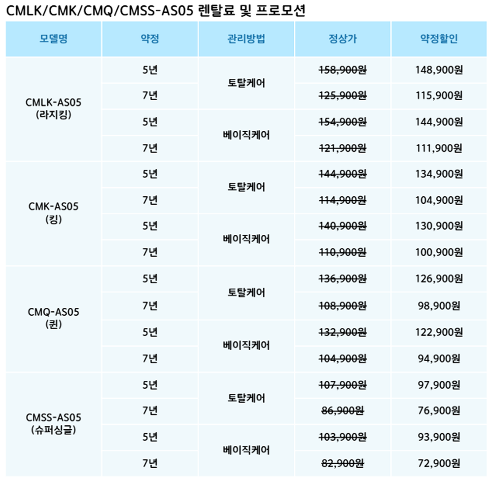 원활한 렌탈 상담 및 주문을 위한 참조자료로 아래와 같은 항목의 개인정보를 수집하고 있습니다
