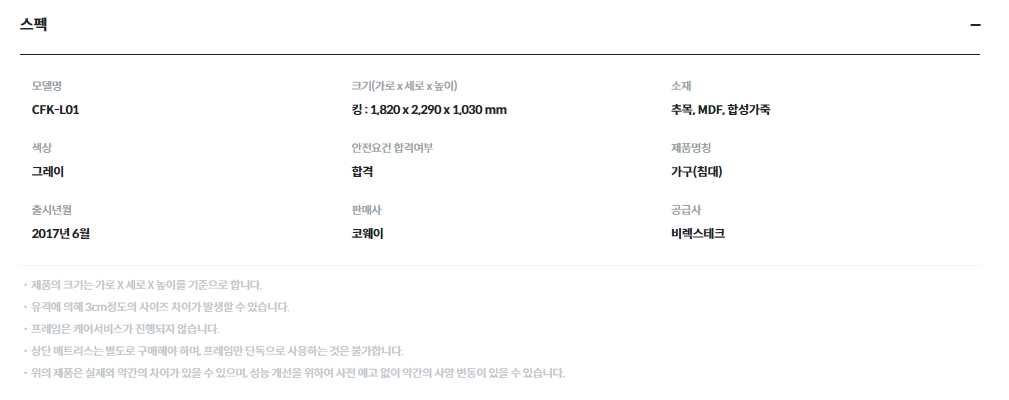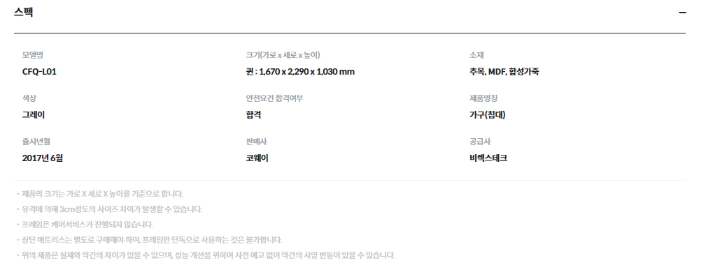 [코웨이] 단매트리스 프레임 (퀸,킹)