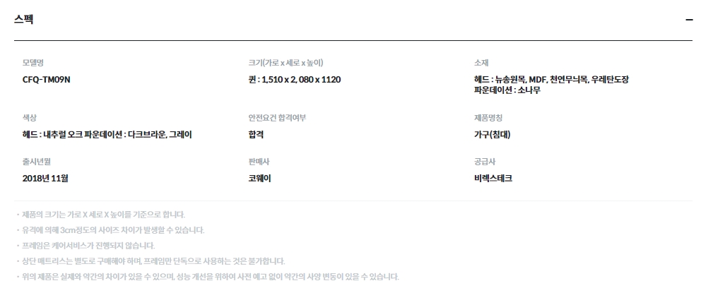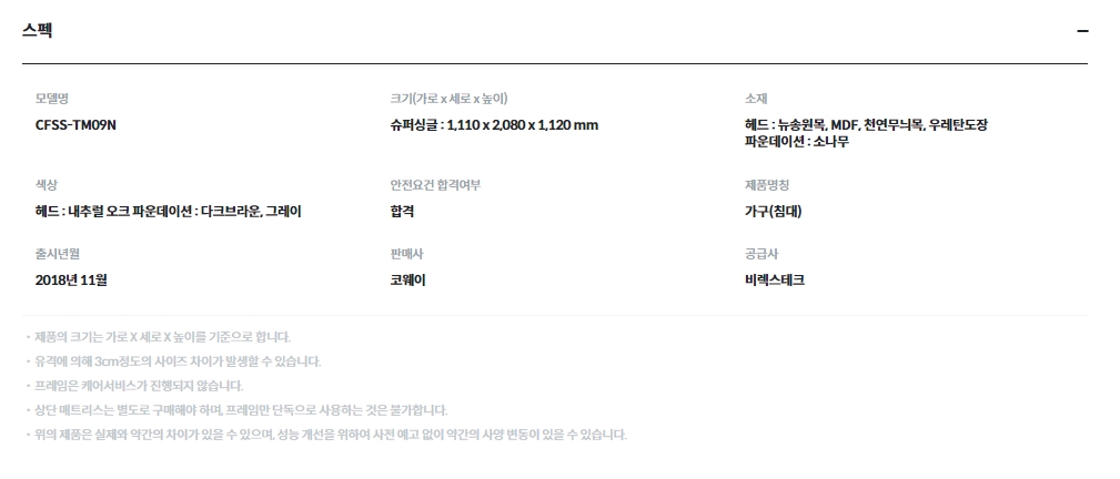 [코웨이] 투매트리스 프레임 내추럴오크 (슈퍼싱글,퀸,킹)