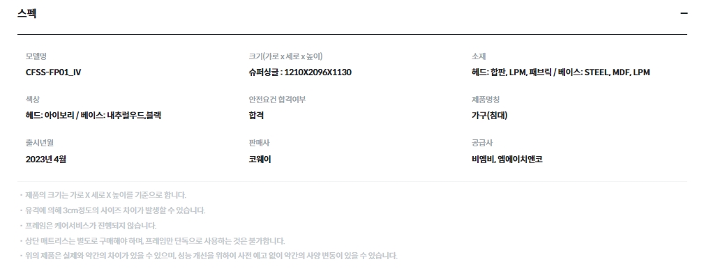 [코웨이] 마이프레임 플랫헤드 기본형(슈퍼싱글,퀸,킹)