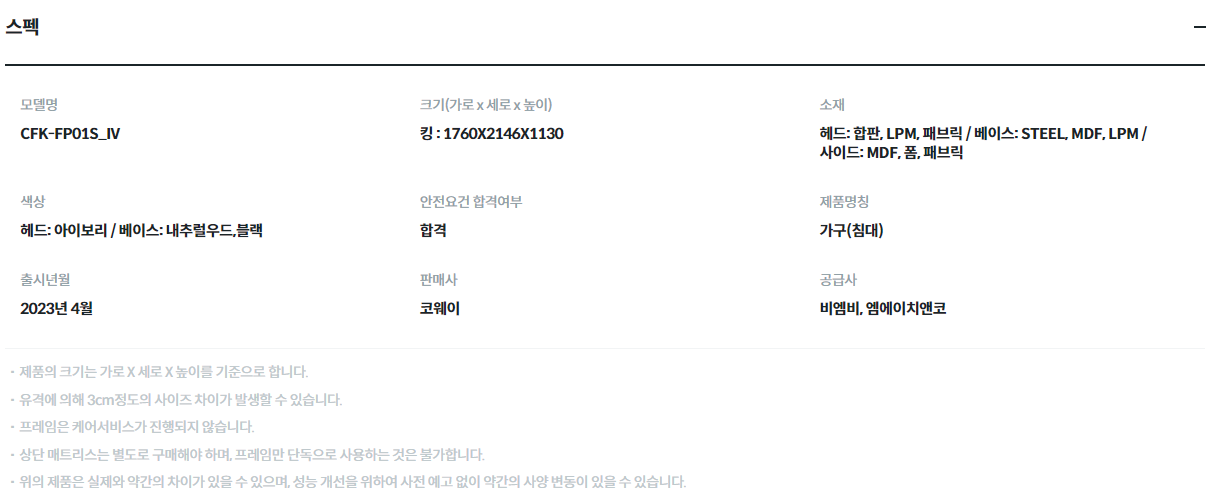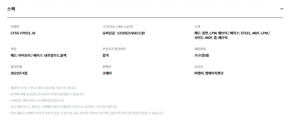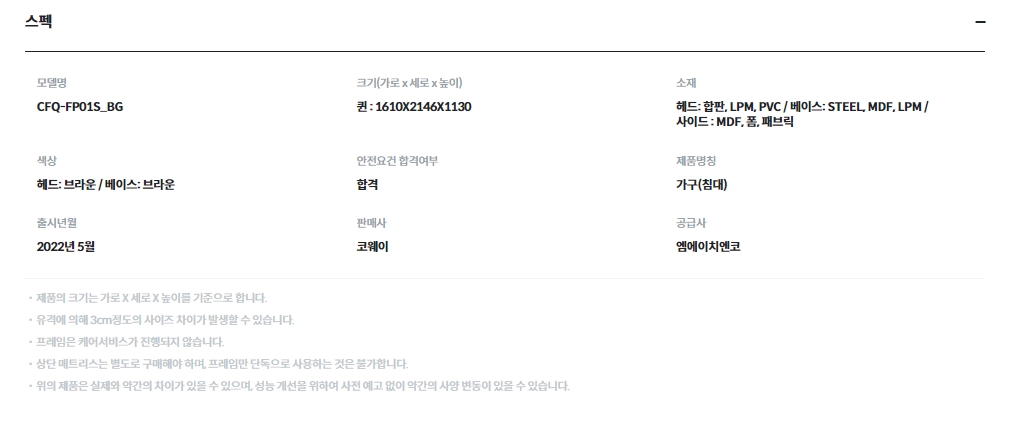 [코웨이] 마이프레임 플랫헤드 사이드형(슈퍼싱글,퀸,킹)