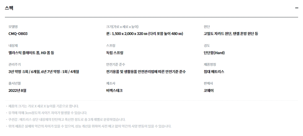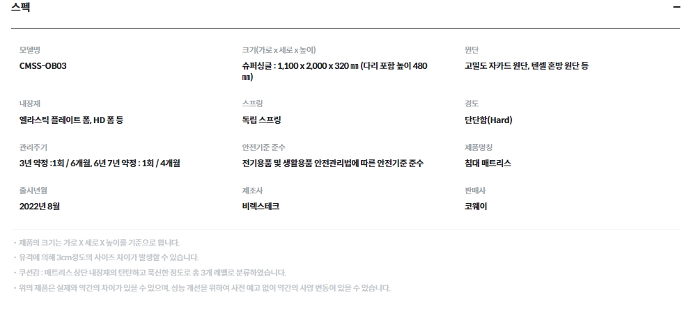 [코웨이] 커버교체 원바디2 매트리스 (슈퍼싱글,퀸)